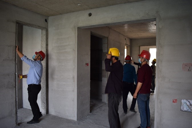 实测实量小组由锦艺四季城K地块、Q地块项目技术负责人朱耀朋、武培月带队陪同第三方评估人员,主要对主体的垂直度、平整度,楼板厚度,构件截面尺寸,顶板水平度,以及抹灰意昂2·(中国区)官方直营平台的垂直度、平整度,阴阳角方正度、房间方正性、墙面空鼓开裂和观感等进行了系统的评估和检测。